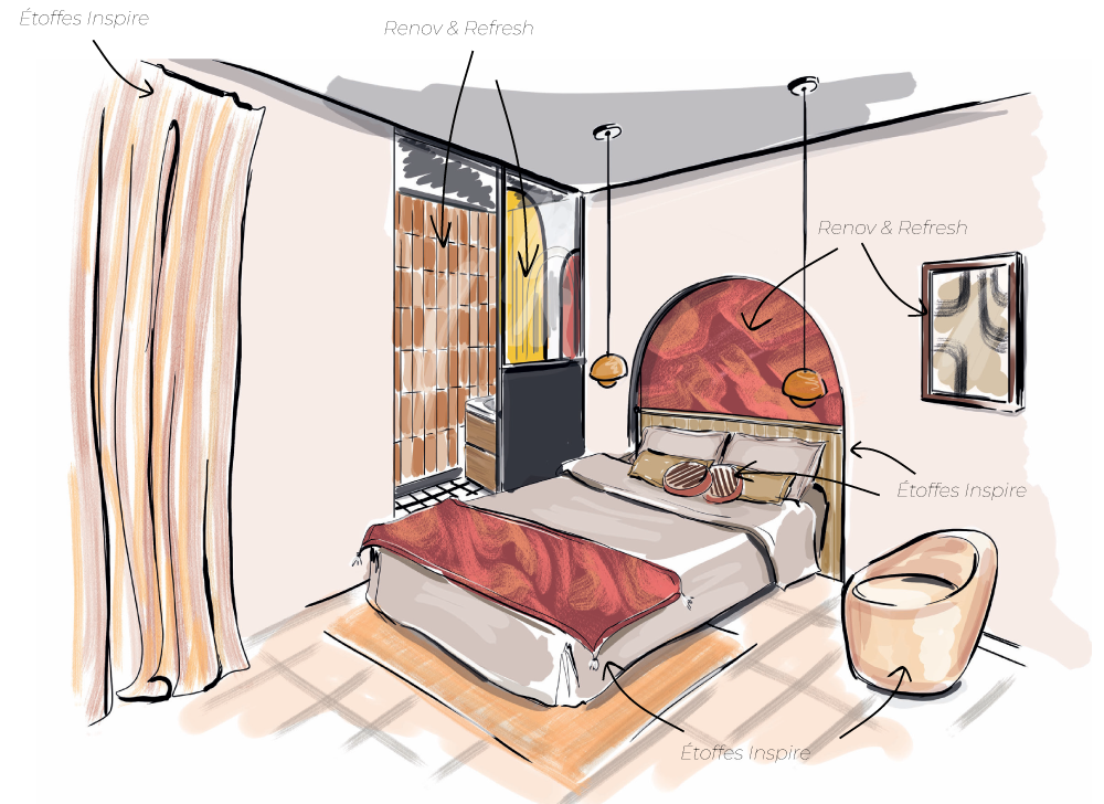 Acteurs importants dans la création de décors pour l’hotellerie, Étoffes Inspire et Renov & Refresh associent leurs savoir-faire riches et complémentaires dans le lancement du nouveau concept, 100% personnalisable, INFINI.